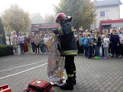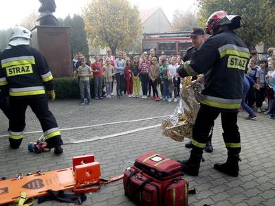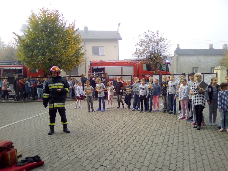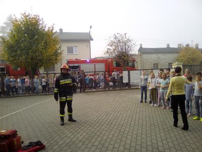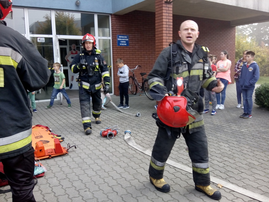 przeprowadził z uczniami naszej szkoły pogadankę na temat próbnej ewakuacji w przypadku pożaru, która miała miejsce w naszej szkole i na temat bezpieczeństwa w okresie zimowym.