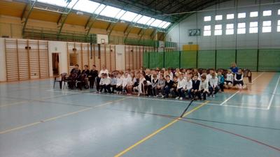 Społeczność szkolna z zainteresowaniem i w skupieniu obejrzała oraz wysłuchała tej szczególnej lekcji historii.