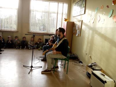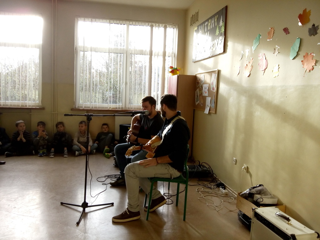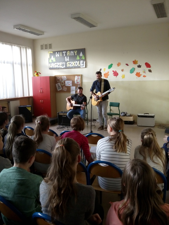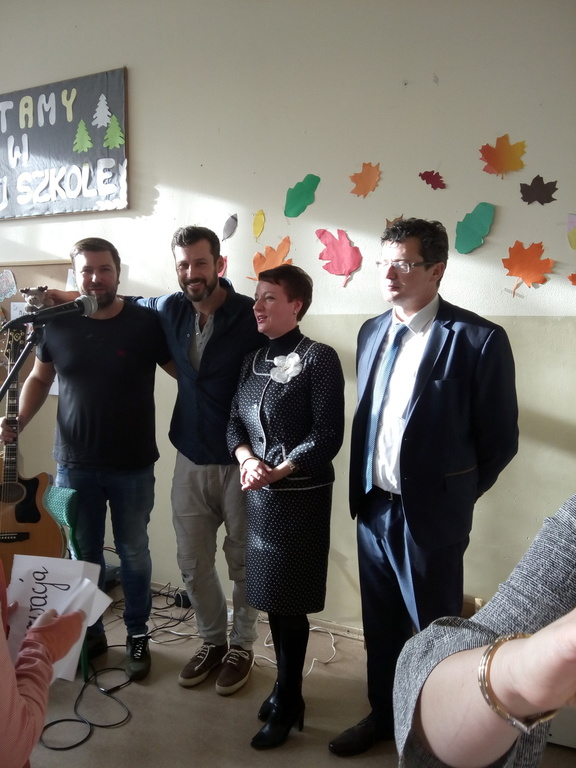 Bartosz Grzanek- gitarzysta, wokalista, kompozytor, autor, serdecznie wspominał atmosferę, jaka panowała w szkole podczas przerw obiadowych oraz nauczycieli- koleżanki i kolegów z pracy, a gitarzysta-Łukasz Kapuściński (absolwent naszej „jedynki”) opowiadał o latach spędzonych w naszej szkole .Wspólnie zagrali koncert, podczas którego gościliśmy pana Burmistrza Miasta Tuszyna - Witolda Małeckiego.