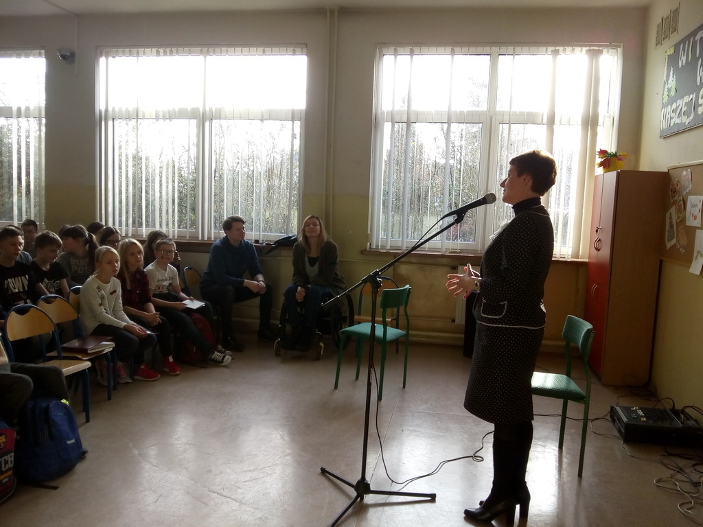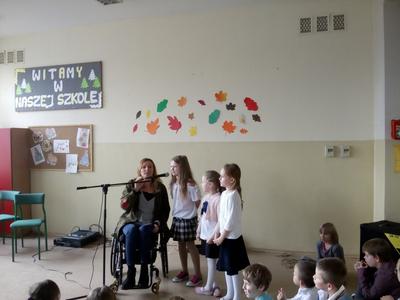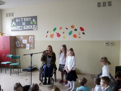 Po 12.00 w stołówce szkolnej odbyło się spotkanie z Moniką Kuszyńską- polską piosenkarką i autorką tekstów oraz z Jakubem Raczyńskim. Pani Monika opowiadała o potrzebie oddawania krwi, która ratuje życie. Wspólnie z uczniami zaśpiewała kolędę „Lulajże Jezuniu”.