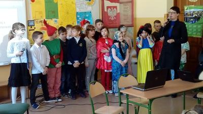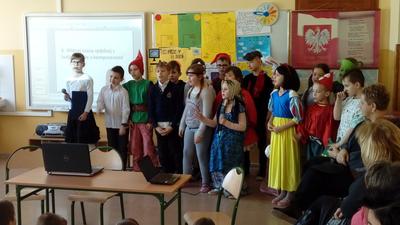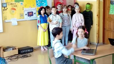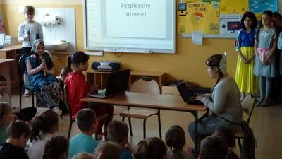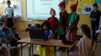 Na apelu uczniowie przebrani w bajkowe postaci zaprezentowali scenki zmotywem zachowania bezpieczeństwa w Internecie. Przedstawili także prezentację multimedialną, której celem było przypomnienie zasad