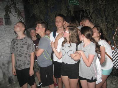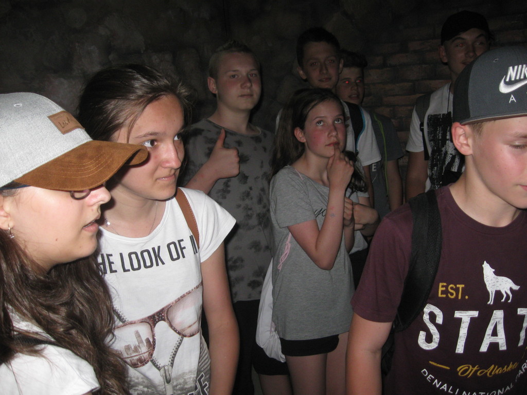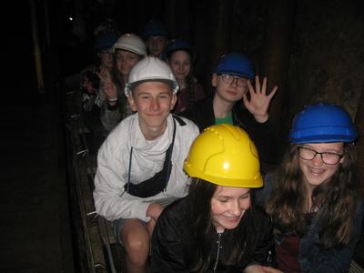 Pierwszego dnia udali się do Tarnowskich Gór. W oczekiwaniu na wejście do Zabytkowej Kopalni Srebra zwiedzili Skansen Maszyn Parowych, w którym znajduje się niezwykła kolekcja maszyn używanych w dawnym przemyśle górniczym. Następnie zwiedzili Zabytkową Kopalnię Srebra, która od 2017 r. jest wpisana na Listę Światowego Dziedzictwa UNESCO. Kopalnia znajduje się na głębokości 40 m. W czasie niezwykłej wędrówki uczniowie oglądali pochodzące z XVIII i XIX w. przodki górnicze, dawne stanowiska pracy i narzędzia. Blisko 300-metrowy fragment trasy pokonali łodzią. Dopełnieniem wrażeń pierwszego dnia był przepływ łodziami w podziemiach Sztolni „Czarnego Pstrąga”, położonego w Parku Repeckim. Trasa od Szybu „Ewa” – gdzie zjeżdżaliśmy pod ziemię – do Szybu „Sylwester” liczy sobie aż 600 m i jej pokonanie łodziami zajmuje średnio 40 min w temperaturze 10oC. Atmosferę tajemniczości w kopalni tworzyło delikatne światło lamp górniczych. Podziemna przeprawa dostarczyła wszystkim wielu pozytywnych wrażeń i była największą atrakcją.