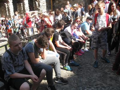 Drugiego dnia uczestnicy wycieczki wyruszyli do Ogrodzieńca, gdzie na Podzamczu znajdują się przepiękne ruiny zamku. Z zainteresowaniem zwiedzili jego mury. Historia Zamku przekazana przez przewodnika zaciekawiła i obudziła wyobraźnię słuchających. Po wyjściu z ruin zamku udali się do Parku Doświadczeń Fizycznych, który przeniósł zwiedzających do świata odkryć i eksperymentów. Znajduje się tu 35 urządzeń, które wyjaśniają działanie podstawowych praw fizyki. Każdy mógł skorzystać z Symulatora Lotu i na własnej skórze przekonać się, co czuje pilot samolotu podczas powietrznych manewrów. Kolejną atrakcją była zabawa w Parku Rozrywki z dmuchanymi zamkami, huśtawkami i karuzelą oraz zjazd torem saneczkowym z licznymi zakrętami.
