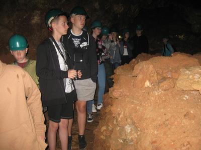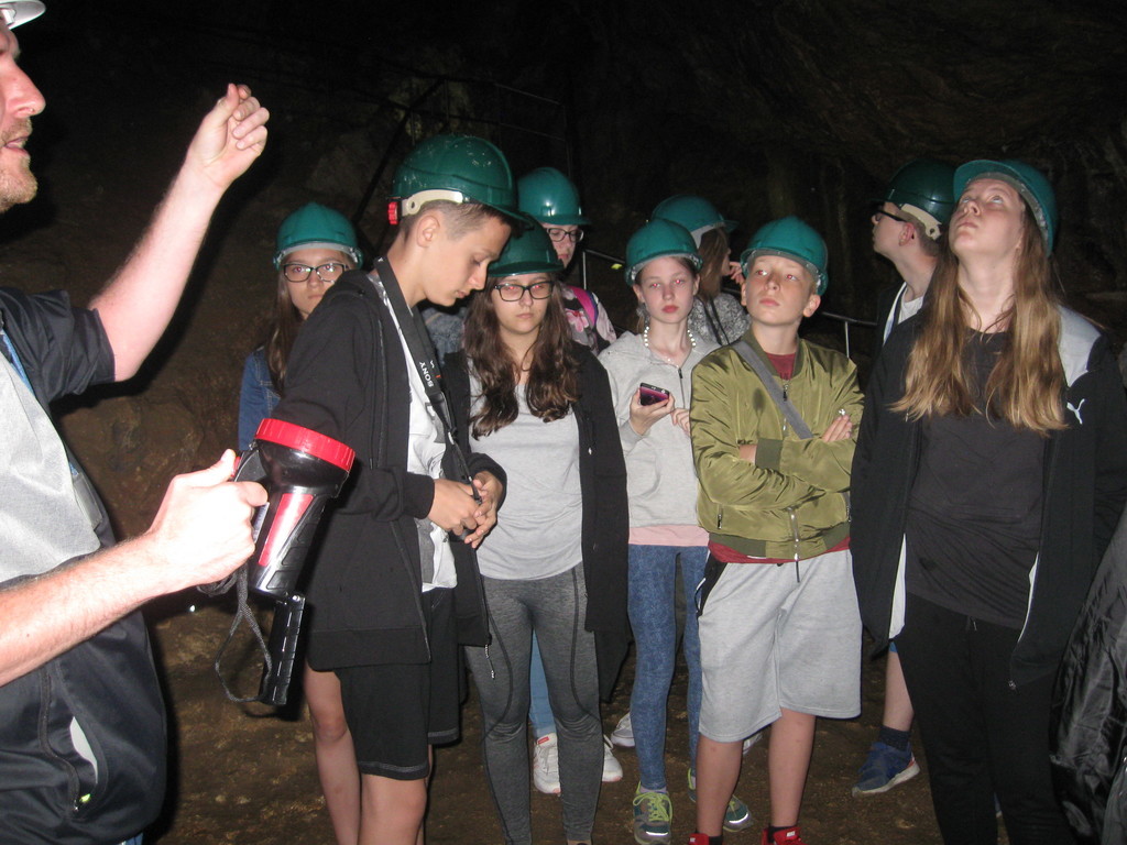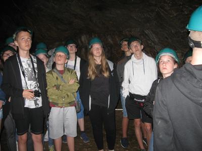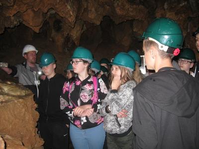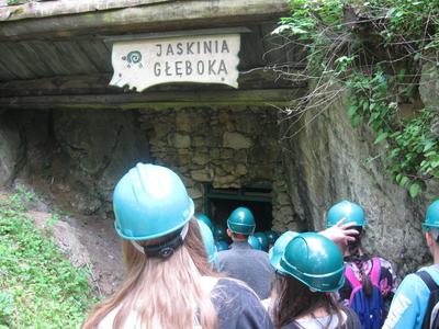 Ostatnim punktem wycieczki było zwiedzanie z przewodnikiem Jaskini Głębokiej, której korytarze liczą w sumie aż 190 m. W jaskini przed II wojną światową wydobywano kalcyt. Obecnie żyje tu ok. 40 nietoperzy, a temperatura w środku wynosi tylko 7oC.
