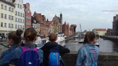 Drugiego dnia wyruszyliśmy na wycieczkę do Trójmiasta. W Gdańsku spacerowaliśmy ulicą Mariacką i Długim Targiem, podziwialiśmy zabytkowe mieszczańskie kamienice. Następnie wyruszyliśmy w rejs statkiem po Motławie. Po drodze podziwialiśmy spichlerze i zabytkowe nabrzeża nie zniszczone w czasie wojny. U celu podróży dotarliśmy do Westerplatte. Kojarzycie charakterystyczny pomnik, który z oddali przypomina miecz wbity w ziemię po rękojeść? To symbol Westerplatte. Na Westerplatte padły pierwsze strzały w najstraszniejszym światowym konflikcie, jaki pamięta ludzkość. 1 września 1939r. w tym miejscu rozpoczęła się bohaterska obrona Wybrzeża. Obejrzeliśmy wystawę plenerową, która w kilku odsłonach prezentuje historię Westerplatte. Znaczenie tego miejsca, przybliżone przez wystawę, pozwala w prosty i przystępny sposób poczuć jego klimat, przenieść się na chwilę do pierwszych dni września 1939r., zrozumieć, co się wówczas właściwie stało. Cytaty świadków, fragmenty książek, relacje i opisy potęgują wrażenie, jakby było się na miejscu wydarzeń. Zniszczone podczas niemieckiego ostrzału z pancernika Schleswig-Holstein koszary wojskowe, cmentarz czy bunkry obrazują ogrom strat jakie miały tu miejsce w pierwszych dniach wojny i nie pozwalają zapomnieć, że to wszystko wydarzyło się naprawdę i wcale nie tak dawno temu, jak niektórym z nas mogłoby się wydawać. Nasz dzień tutaj się jednak nie kończył. Zdążyliśmy jeszcze odwiedzić Gdynię, gdzie zwiedzaliśmy Dar Pomorza a także przespacerować się po Molo w Sopocie.