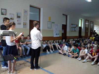 18 maja 2018 r. w naszej szkole odbył się apel przygotowany przez uczniów z klasy VII b i VII c, a nad którym czuwała pani Dorota Madaj. Poświęcony był osobie Ireny Sendlerowej- kobiety, która z narażeniem życia broniła żydowskich dzieci przed śmiercią w getcie. Postać Sendlerowej pod każdym względem zachwyca. Była od zawsze osobą gotową, by nieść pomoc najsłabszym. Ta idea pomocy przyświecała jej od najmłodszych lat, bo takich zasad moralnych została wychowana i była przekonana o słuszności ich stosowania w każdym momencie życia, a tym bardziej w czasach "zezwierzęcenia" i upodlenia ze strony hitlerowskich Niemiec. Irena Sendlerowa wraz z Januszem Korczakiem pomagała szukać nowych domów osieroconym dzieciom i udawało się jej to. Zdawała sobie sprawę,że czeka ją śmierć za pomoc. Nie ugięła się nawet na Pawiaku...Kobieta - legenda.