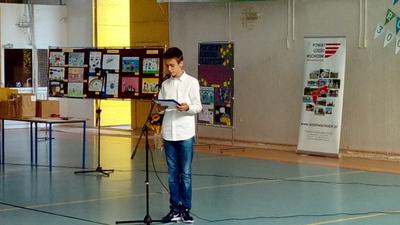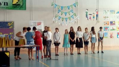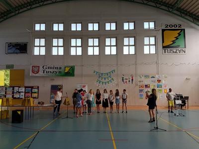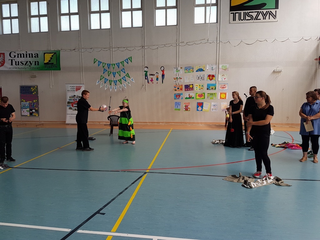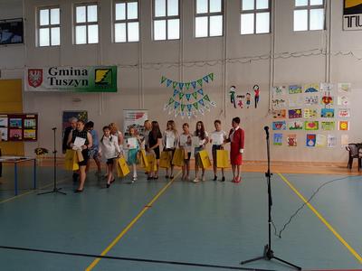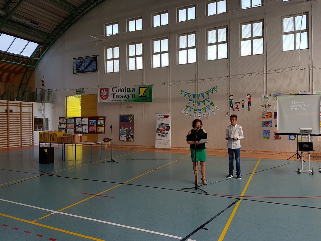 Uroczystość rozpoczęto prezentacją multimedialną przybliżającą gościom tematykę praw dziecka. Prezentację przygotował uczeń klasy 7c Norbert Justyna pod kierunkiem nauczyciela informatyki Pani Bogumiły Lolo. Następnie odbyło się wręczenie nagród laureatom Powiatowego Konkursu Plastycznego „Mieć prawa to odpowiedzialna sprawa” przeprowadzonego przez Szkołę Podstawową Nr 1 w Tuszynie we współpracy z Poradnią Psychologiczno- Pedagogiczną w Koluszkach. Pomysłodawcą i koordynatorem konkursu był pedagog SP Nr 1 w Tuszynie Pani Lidia Perek. Honorowy patronat nad konkursem objęli: Łódzki Kurator Oświaty, Starosta Łódzki Wschodni i Burmistrz Miasta Tuszyna. Nagrody w konkursie ufundowała Firma HAZET ze Rzgowa. Uroczystość uświetniły: występ chóru szkolnego pod kierunkiem Pana Mariusza Kotarskiego oraz przedstawienie przygotowane przez uczniów Ośrodka Szkolno- Wychowawczego w Koluszkach należących do Grupy Teatralnej „Tacy sami”. Na zakończenie oficjalnej części uroczystości Pani Dyrektor Joanna Owczarek- Szymajda odczytała list od Pani Sędzi Anny Marii Wesołowskiej, która nie mogła osobiście uczestniczyć w uroczystości ze względu na stan zdrowia. W swoim liście Pani Sędzia zwróciła uwagę na istotę praw dziecka oraz wyraziła chęć spotkania się z uczniami we wrześniu.