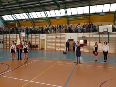 Słowo wstępne należało do pani dyrektor Joanny Owczarek - Szymajdy, która przywitała uczniów, nauczycieli, pracowników szkoły po wakacyjnej przerwie. Szczególnie miło było powitać nowych uczniów i nauczycieli. Wierzymy, że pobyt w naszej szkole będzie dla każdego wspaniałą przygodą.