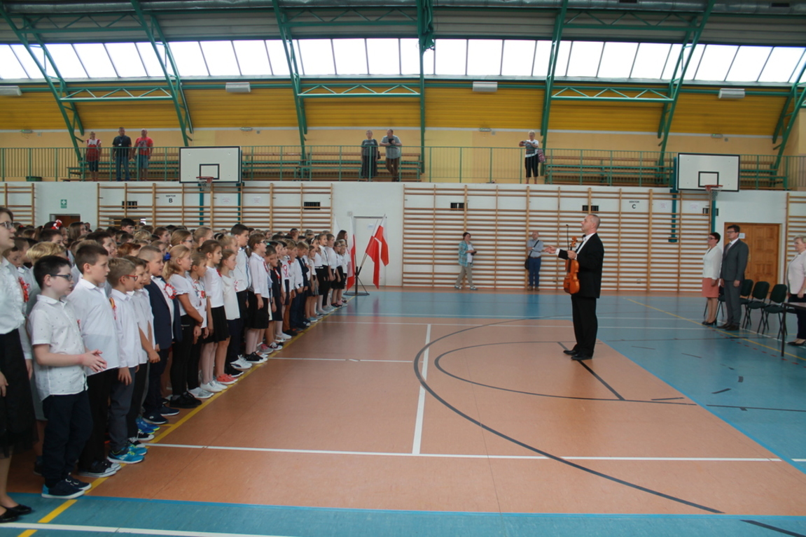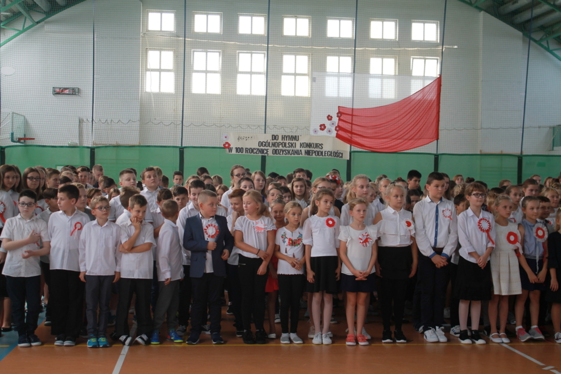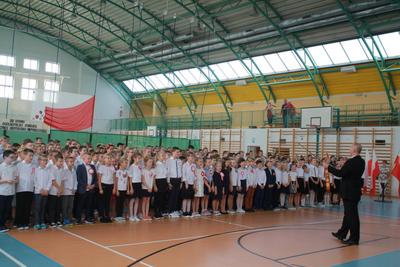 Uczniowie z klas: IV, V, VI i VII zaśpiewali: „Mazurek Dąbrowskiego”, „Rotę” i „Żeby Polska była Polską”.