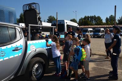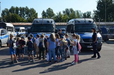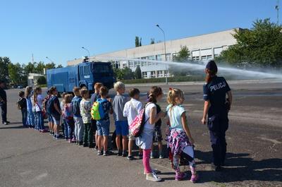 W dniu 10. 09 2018 r. uczniowie klasy 2b odwiedzili Wydział Prewencji Komendy Wojewódzkiej Policji w Łodzi przy ul. Pienistej 71. Celem wycieczki było zapoznanie ze specyfiką pracy policjantów wydziału prewencji. Uczniowie oglądali sprzęt, który na co dzień używają policjanci w swojej pracy: radiowozy policyjne, helikopter patrolujący, wóz z armatką wodną, umundurowanie ochronne. Najbardziej jednak zachwyciła wszystkich przejażdżka radiowozem na sygnale po terenie ośrodka, pokaz działania armatki wodnej oraz wnętrze zabytkowego już modelu helikoptera SN-09 KP.
