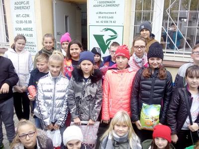 W dniu 30.10.2018r. uczniowie z klasy 5 b i 6c udali się do schroniska dla zwierząt w Łodzi przy Marmurowej 4. Przekazane zostały rzeczy zbierane podczas akcji charytatywnej na rzecz bezdomnych zwierząt,a były to między innymi: sucha i mokra karma,koce, śpiwory, zabawki, smycze.Wszystkim osobom, które pomogły w przebiegu akcji dziękujemy.
