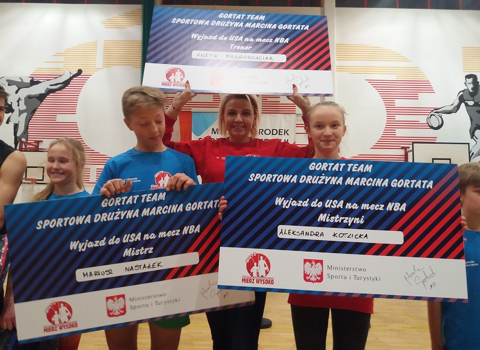 Mistrzami Sportowej Drużyny Marcina Gortata zostali Aleksandra Kotlicka z kl.VII c i Mariusz Nastałek z kl. VIII c, których przygotowywała p. Aneta Małgorzaciak.