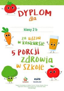Uczniowie klasy 2 b i 3a wzięli również udział w konkursie plastycznym. Zadaniem konkursowym było przygotowanie przez uczniów klas, biorących udział w programie, wspólnej pracy artystycznej – plakatu, przedstawiającej ideę „5 porcji” w codziennej diecie dzieci.