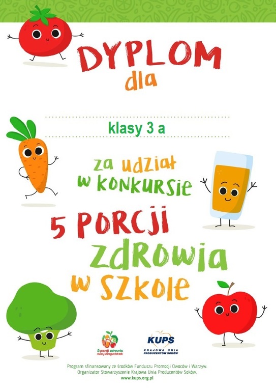 - Wzrost wiedzy o warzywach i owocach, a także sokach, jako podstawie zbilansowanej diety wśród uczniów klas II i III z polskich szkół podstawowych.
