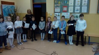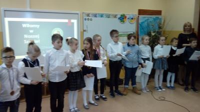 Na tę okoliczność uczniowie klas trzecich pod kierunkiem p. Agnieszki Krawczyk i p. Doroty Jaroniak przygotowali program prezentujący ,,jedynkę”.