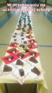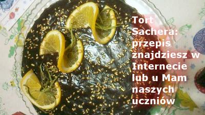 Uczniowie klas siódmych i ósmych oraz ich Mamy upiekli słynny przysmak kuchni wiedeńskiej - tort Sachera. Miał miejsce słodki poczęstunek na korytarzu naszej szkoły.