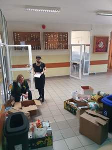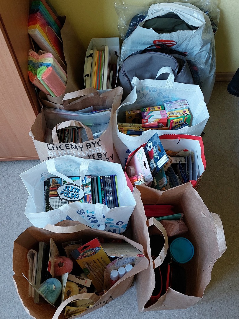 Wkrótce po tym do naszej społeczności szkolnej dołączyli nowi uczniowie z Ukrainy. Z ogarniętego wojną kraju dzieci te uciekały bez niezbędnych przyborów do szkoły. Dlatego dołożyliśmy wszelkich starań, aby ułatwić im ten trudny start organizując zbiórkę artykułów szkolnych, które następnie są przekazywane dzieciom. Nad akcją czuwa p.Emilia Kobylarczyk – opiekun Samorządu Uczniowskiego.
