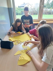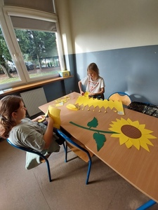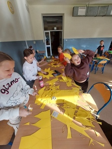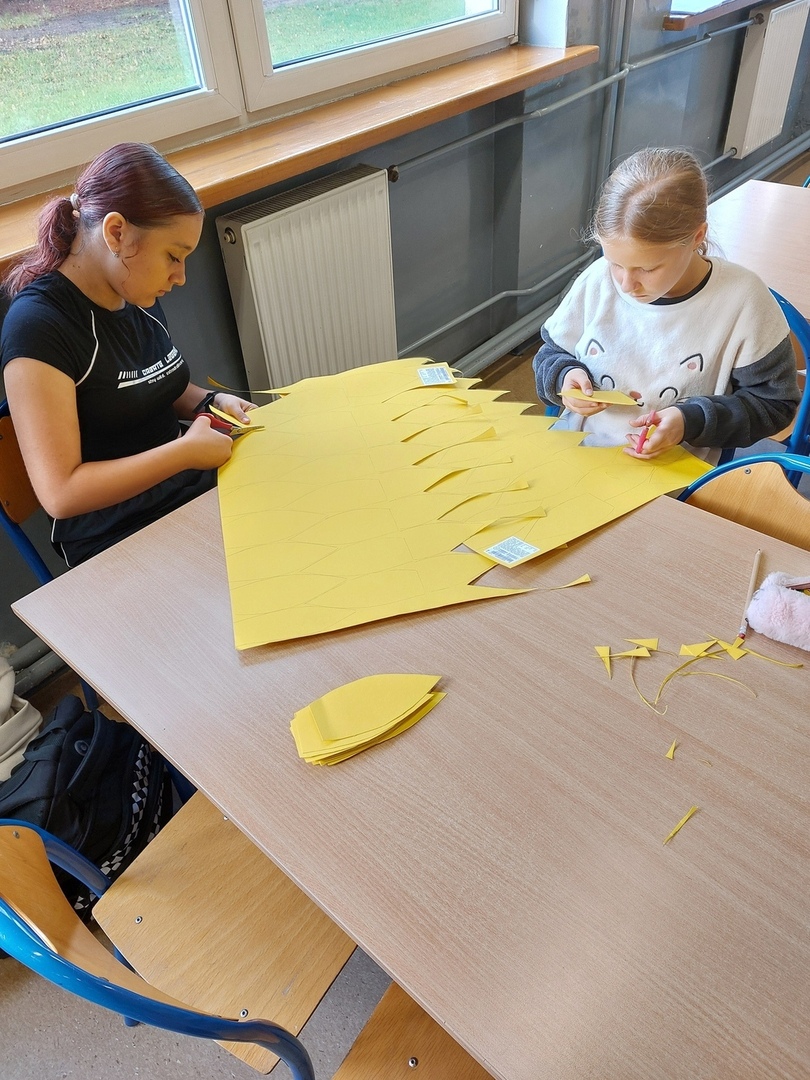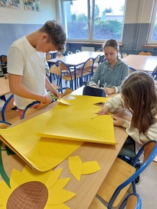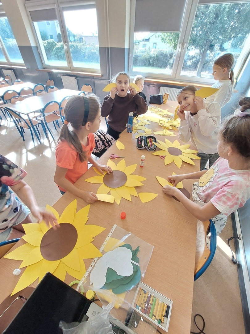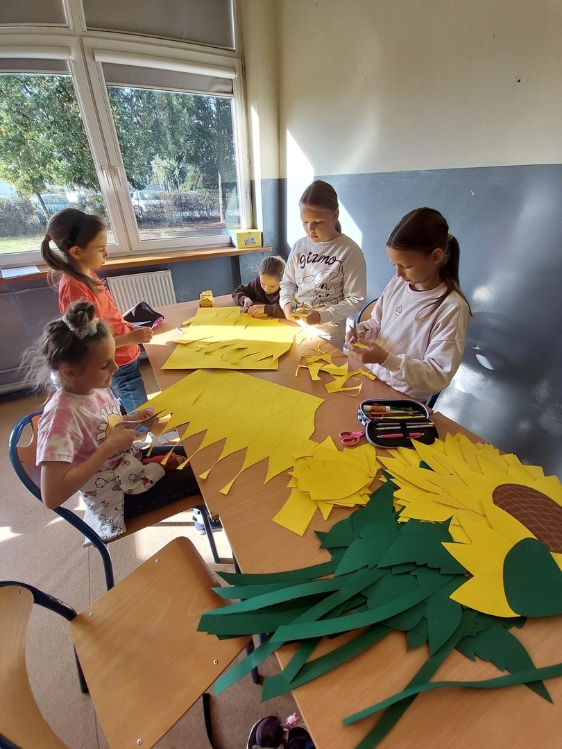 Uczniowie uczęszczający na świetlicę szkolną, pod opieką p. Emilii Kobylarczyk, przygotowali piękną jesienną dekorację. Tematem przewodnim prac były słoneczniki, które dzieci samodzielnie wykonały z dużym zaangażowaniem i kreatywnością. Na zdjęciach można zobaczyć proces powstawania prac oraz efekt końcowy – kolorową i radosną dekorację, która wprowadza do naszej szkoły ciepłą, jesienną atmosferę.