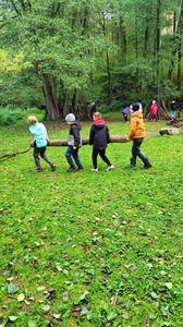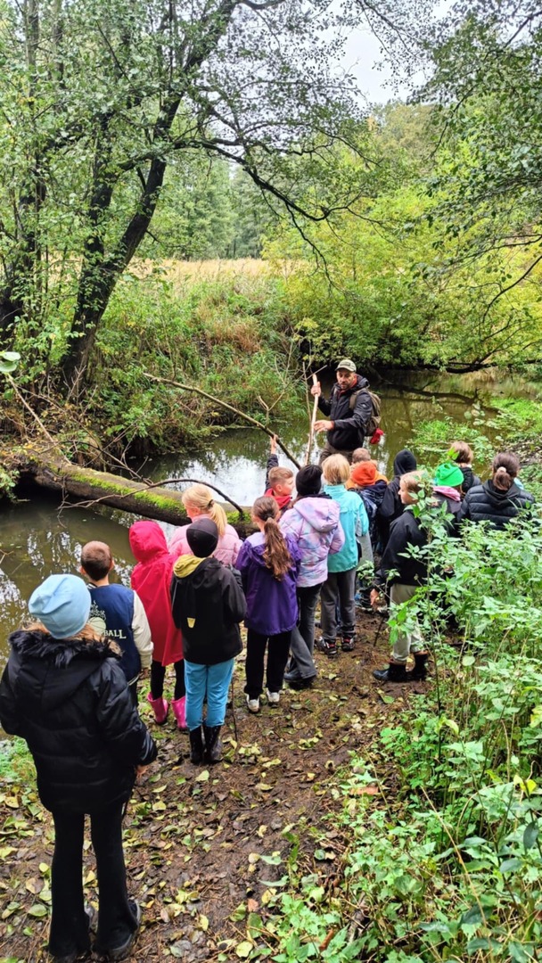Survivalowa przygoda czwartoklasistów. 10 października klasy 4a i 4b z wychowawczyniami p. Haliną Moskwin i p. Katarzyną Gabrych-Zawiszą wybrały się na wycieczkę edukacyjno-integracyjną do Krainy Dzikiej Kaczki w Bronowicach koło Brzezin. To był cudownie spędzony czas w bliskim kontakcie z naturą. Nie straszne były błotniste ścieżki, strome podejścia i rzeczne przeprawy. Profesjonalna opieka instruktorów od survivalu i bushcraftu sprawiła, że uczniowie z ogromnym zaangażowaniem pokonywali kolejne etapy wyprawy, okraszonej sporą dawką wiedzy przyrodniczej, podanej w bardzo ciekawy sposób. Po intensywnej aktywności na świeżym powietrzu, kiełbaska z ogniska smakowała wyjątkowo, a wywar z zebranych po drodze ziół okazał się smaczną i zdrową alternatywą dla słodkich napojów. Potwierdziła się mądrość przysłowia: cudze chwalicie, swego nie znacie. Nie trzeba jechać przez pół Polski, aby znaleźć się w ciekawym krajobrazowo i przyrodniczo miejscu. Jak często nie docenia się tego, co na wyciągnięcie ręki.