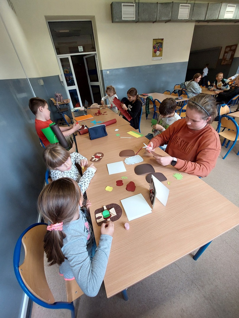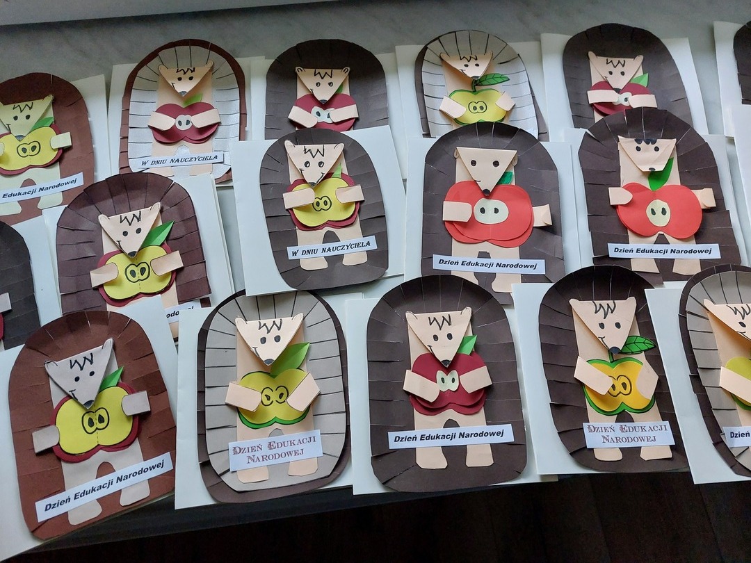 Z okazji Dnia Edukacji Narodowej uczniowie naszej szkoły przygotowali wyjątkowe kartki z motywem jeżyka. Pomysłowe i kolorowe prace powstały podczas zajęć w świetlicy szkolnej, gdzie dzieci z ogromnym zaangażowaniem i kreatywnością tworzyły własnoręczne upominki dla nauczycieli oraz pracowników szkoły.
