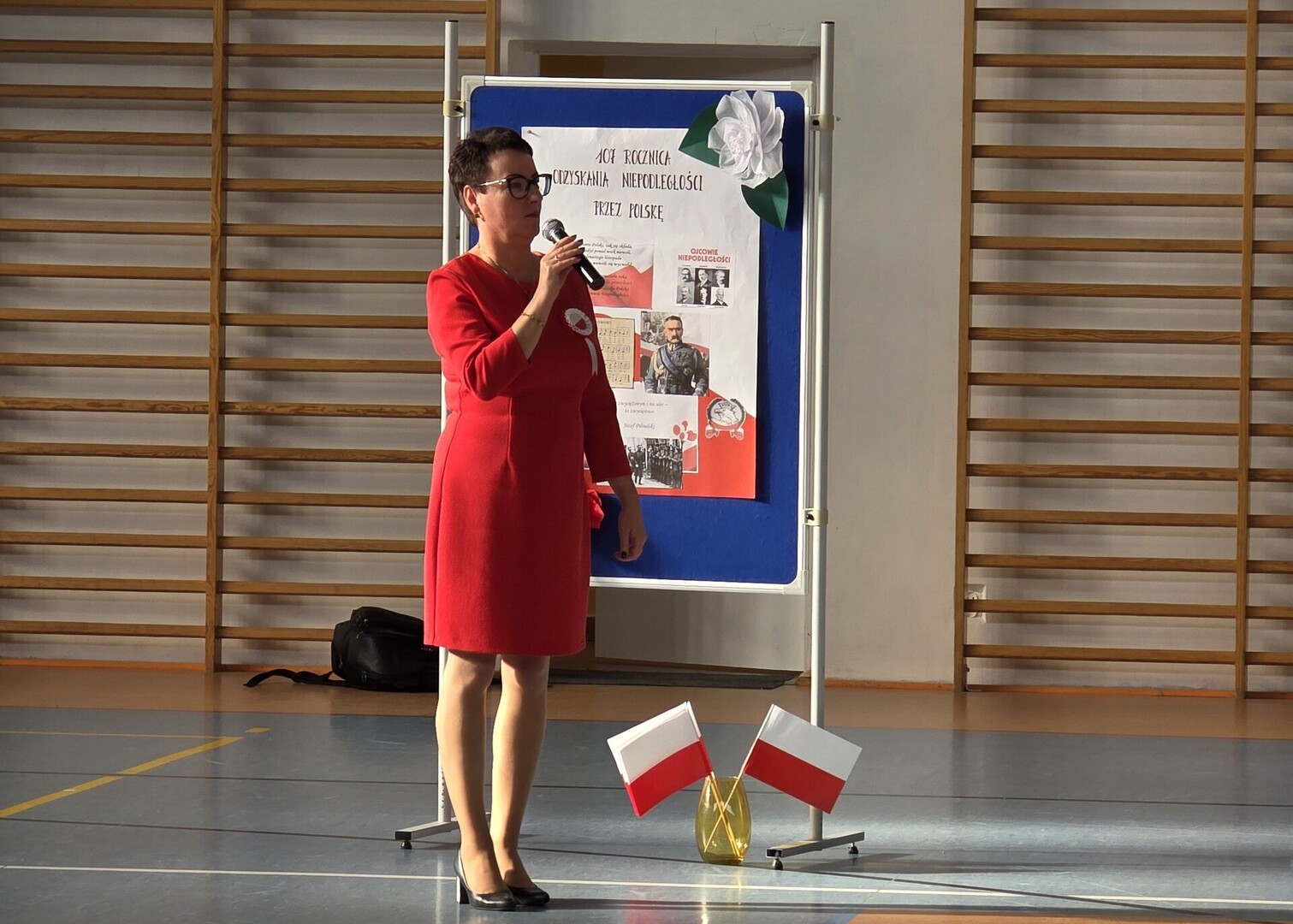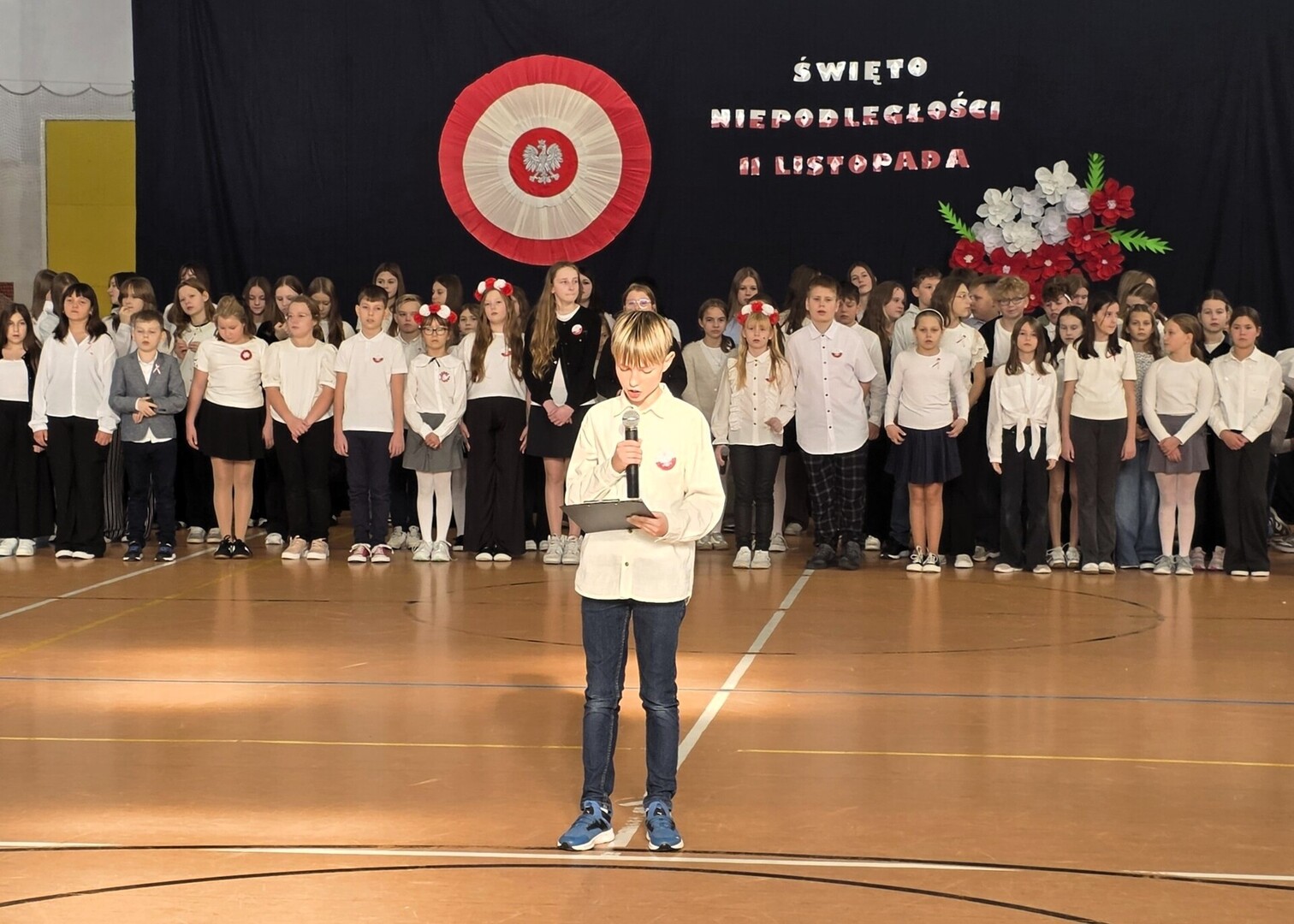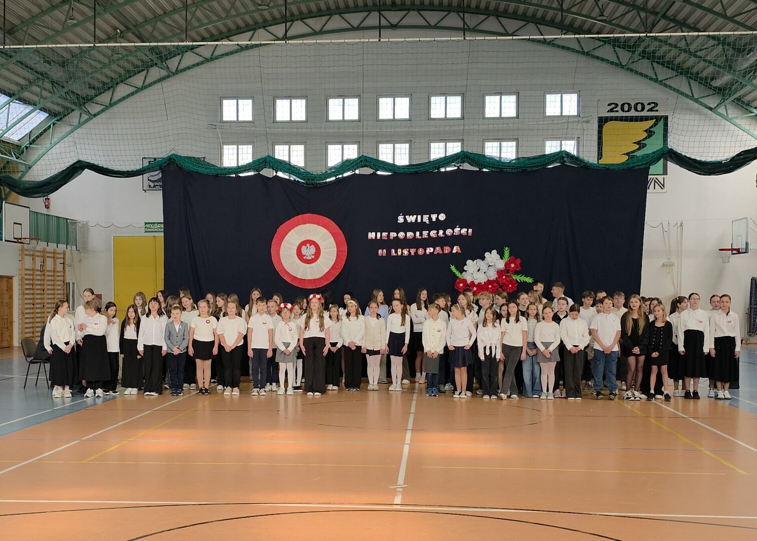 Uczniowie zaprezentowali krótką inscenizację, która przybliżyła historię odzyskania niepodległości. Niezwykłym punktem programu był taniec z flagami w wykonaniu uczennic z klas 5 – piękny, wzruszający i bardzo efektowny występ, który okazał się niespodzianką i zdobył ogromne uznanie publiczności.